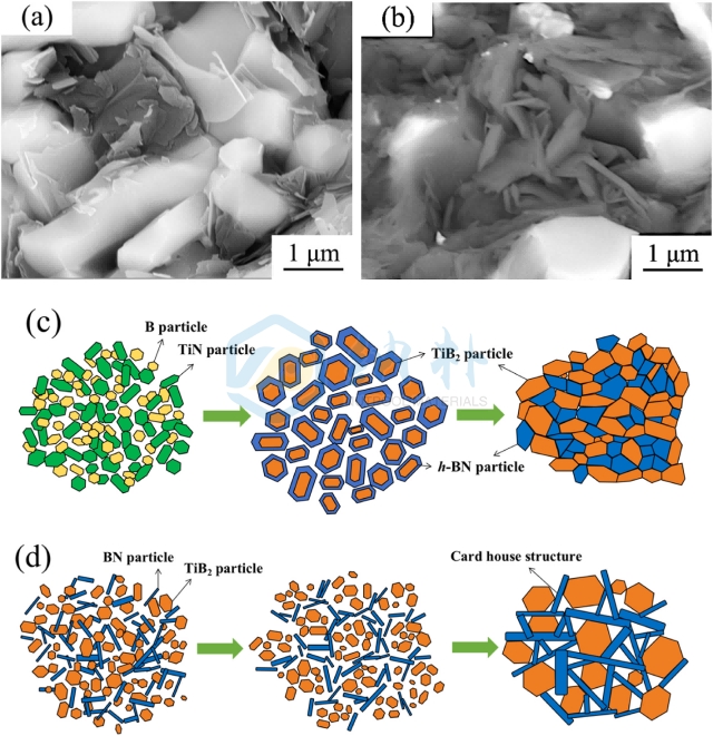 ·反应性烧结(RSPS):以TiN和B为原料,通过原位反应生成TiB₂和hBN;